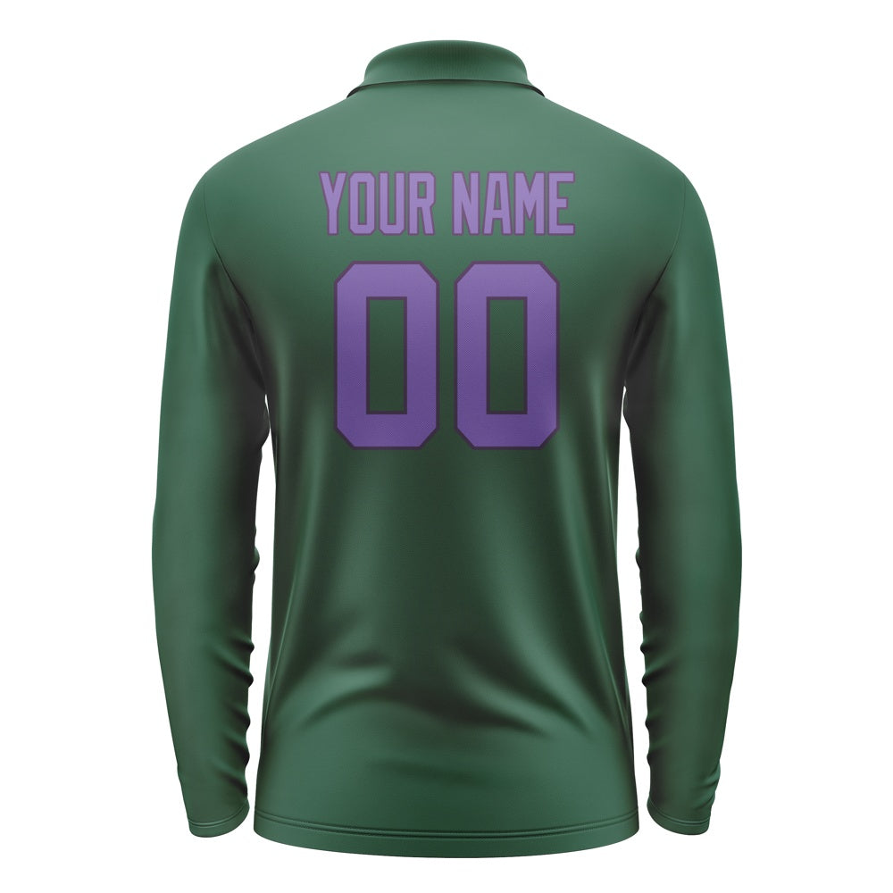 Custom Green Light Purple Long Sleeve Polo Shirt